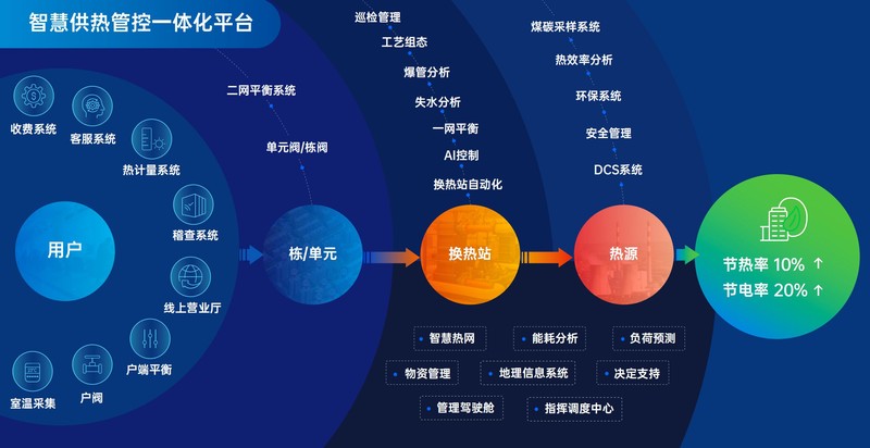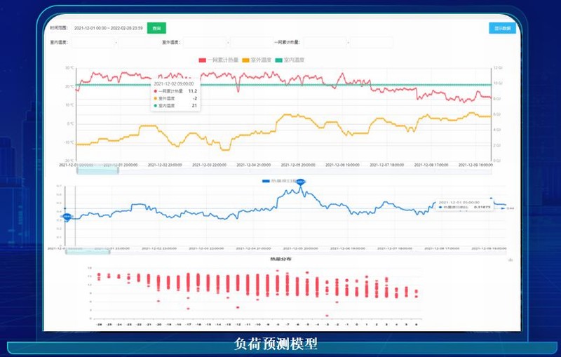 采用目前主流的分布式架构,结合大数据、人工智能算法等先进技术,生成AI模型,自动控制热网系统运行,并不断自我学习优化,实现按目标精确供热。智慧热网平台能通过对热源、换热站、室内温度、室外温度的数据采集使用AI算法构建多种人工智能模型,构建源、网、站、户四个节点端到端之间的多维度管控体系。对热源参数预测,换热站自动调控,进行综合性运算并自动托管,从根本上解决传统人工调控不及时且无法对数据完全掌控而造成能源的浪费。